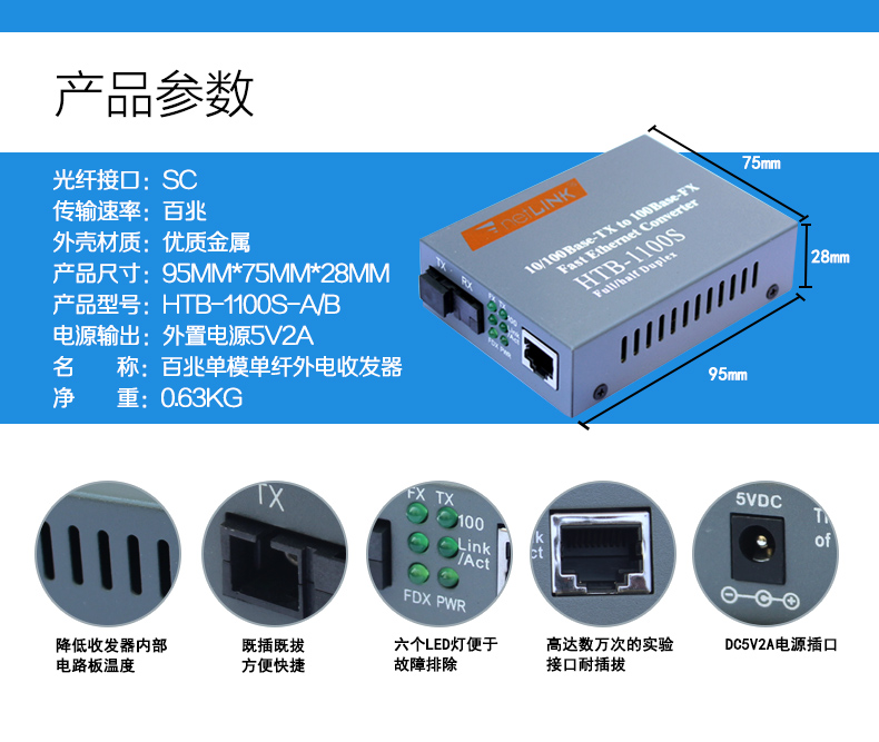 NETLINK 外电单纤单模收发器AB端