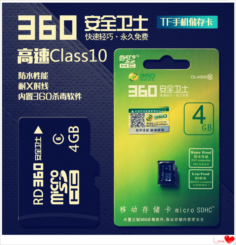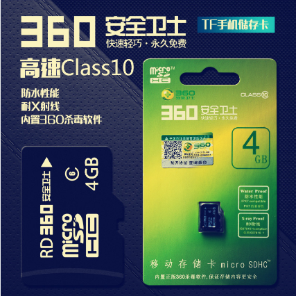 360安全卫士4G TF卡class10高速杀毒防水耐X射线移动储存卡