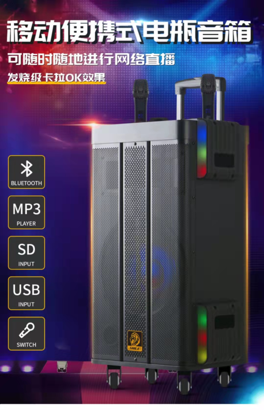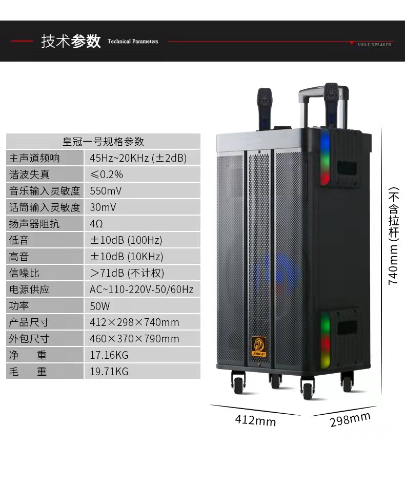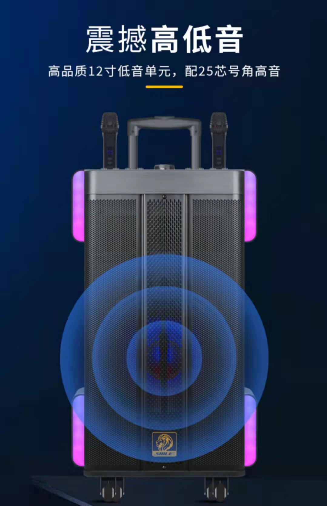 狮乐皇冠一号 12寸直播网红广场舞户外电瓶蓝牙移动音箱