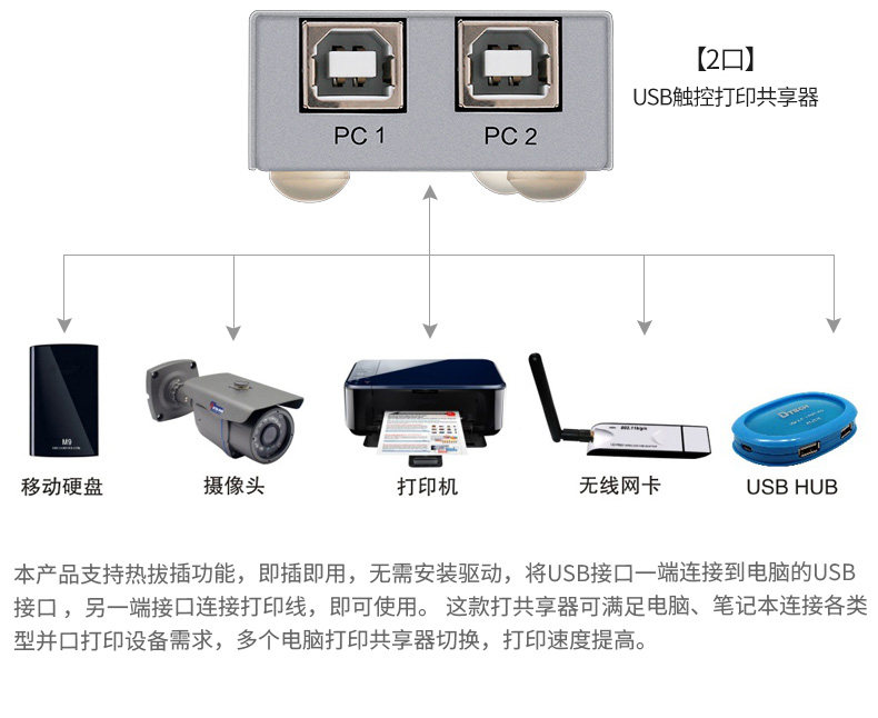 帝特DT-8321 USB2.0触控切换共享器 2口 2台电脑共享USB设备