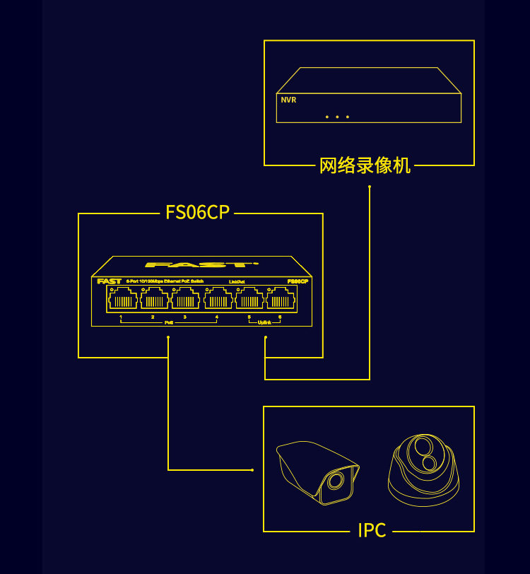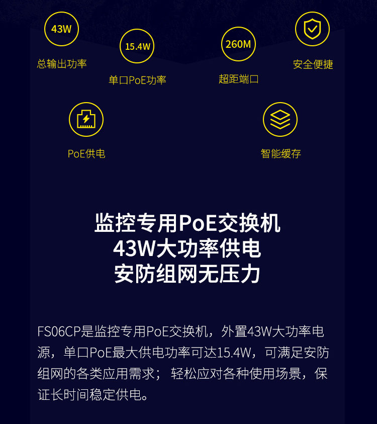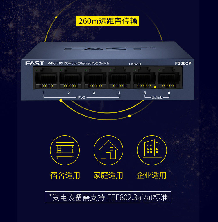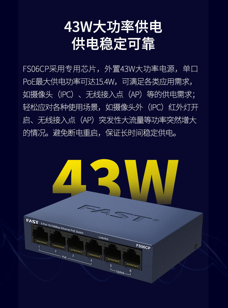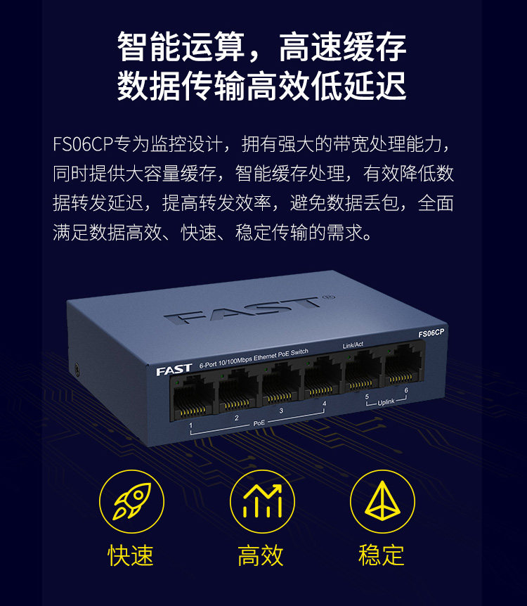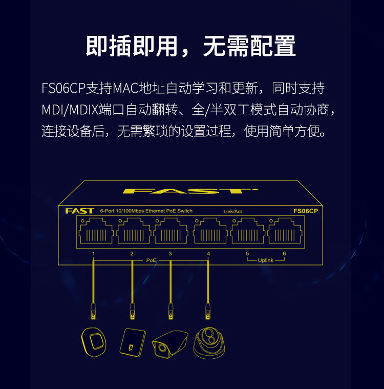 迅捷FS06CP百兆6口POE网络交换机分线分流器监控无线AP设备POE供电器