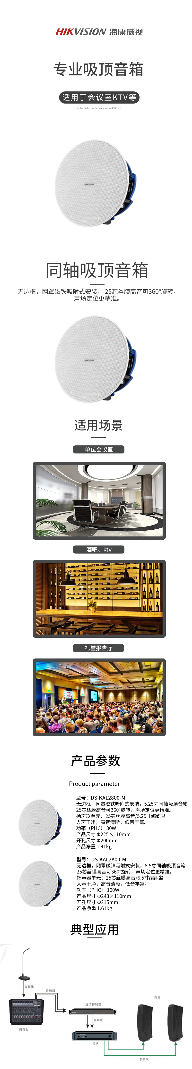 海康威视DS-KAL2800-M 吸顶同轴音响5.25寸嵌入式定阻喇叭套装会议室店铺专用天花吊顶音箱