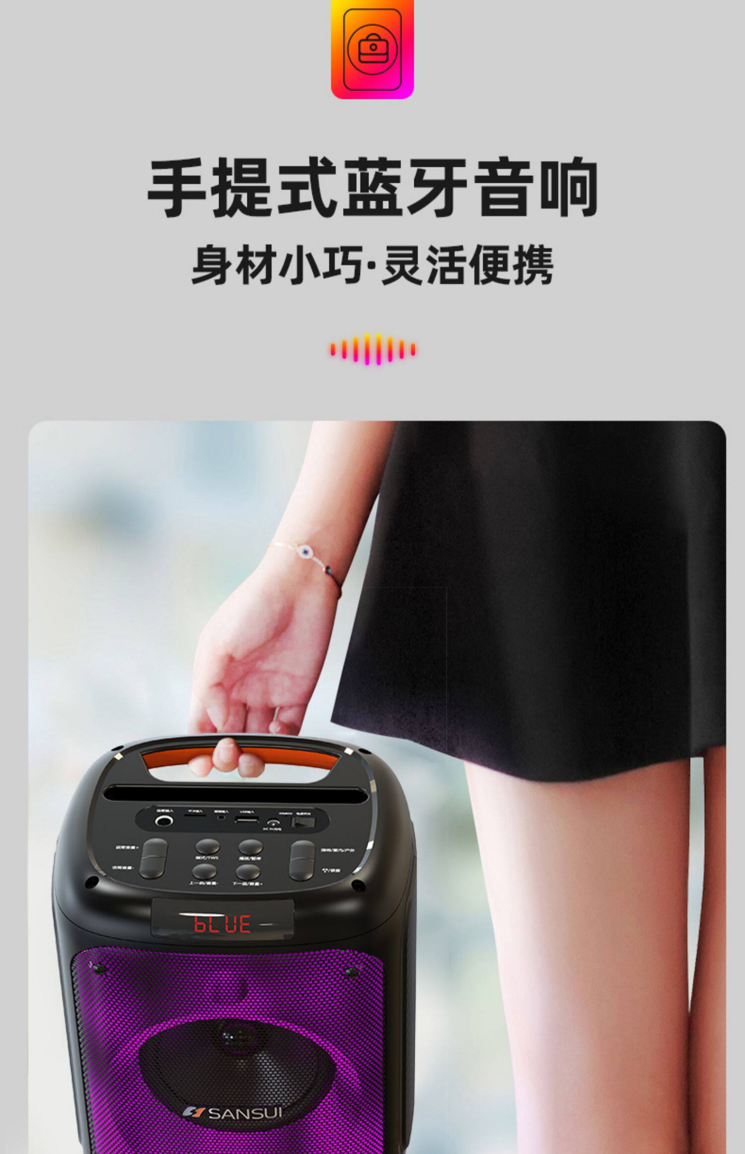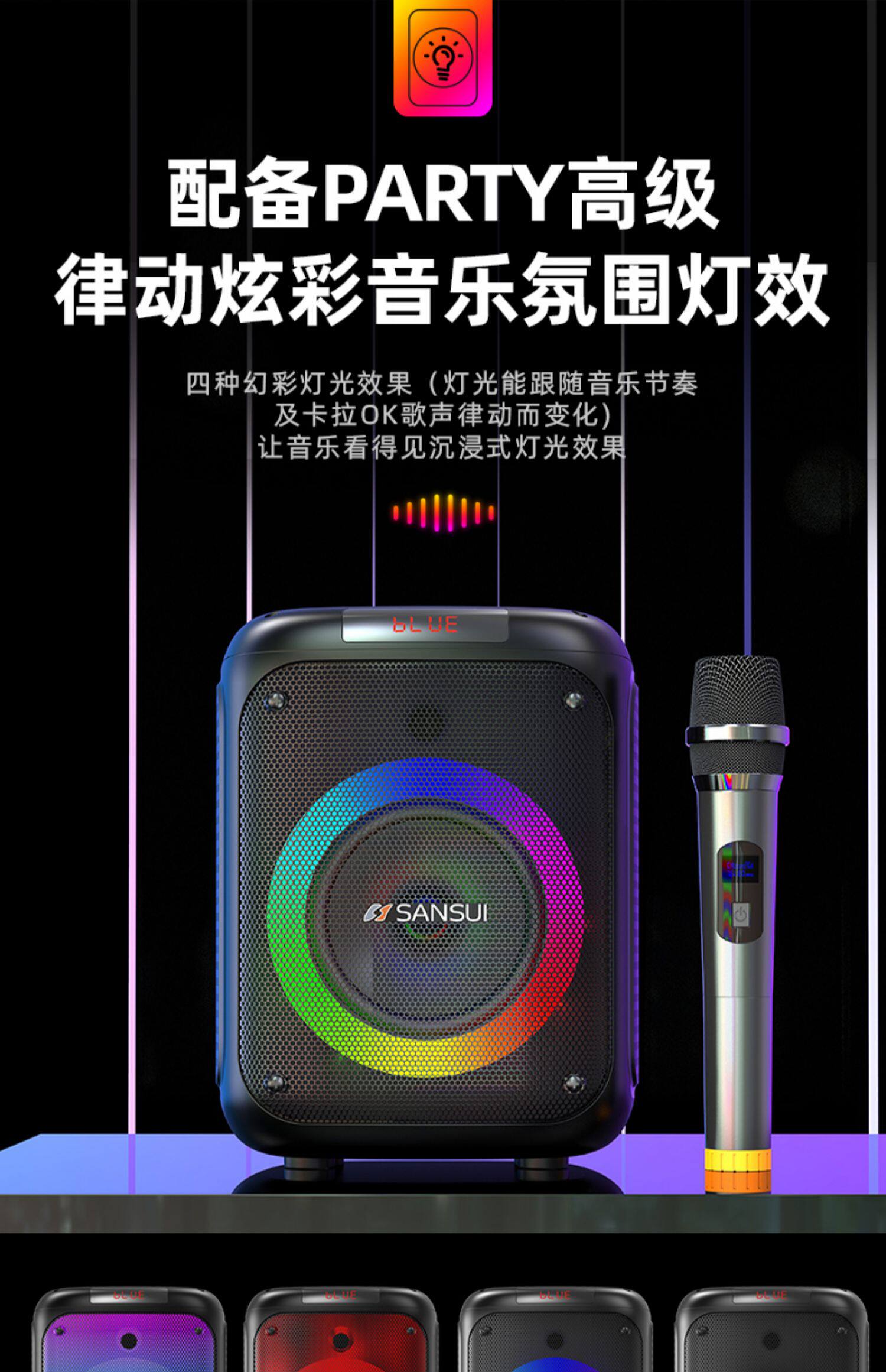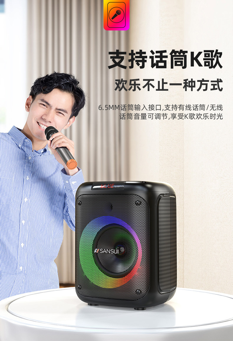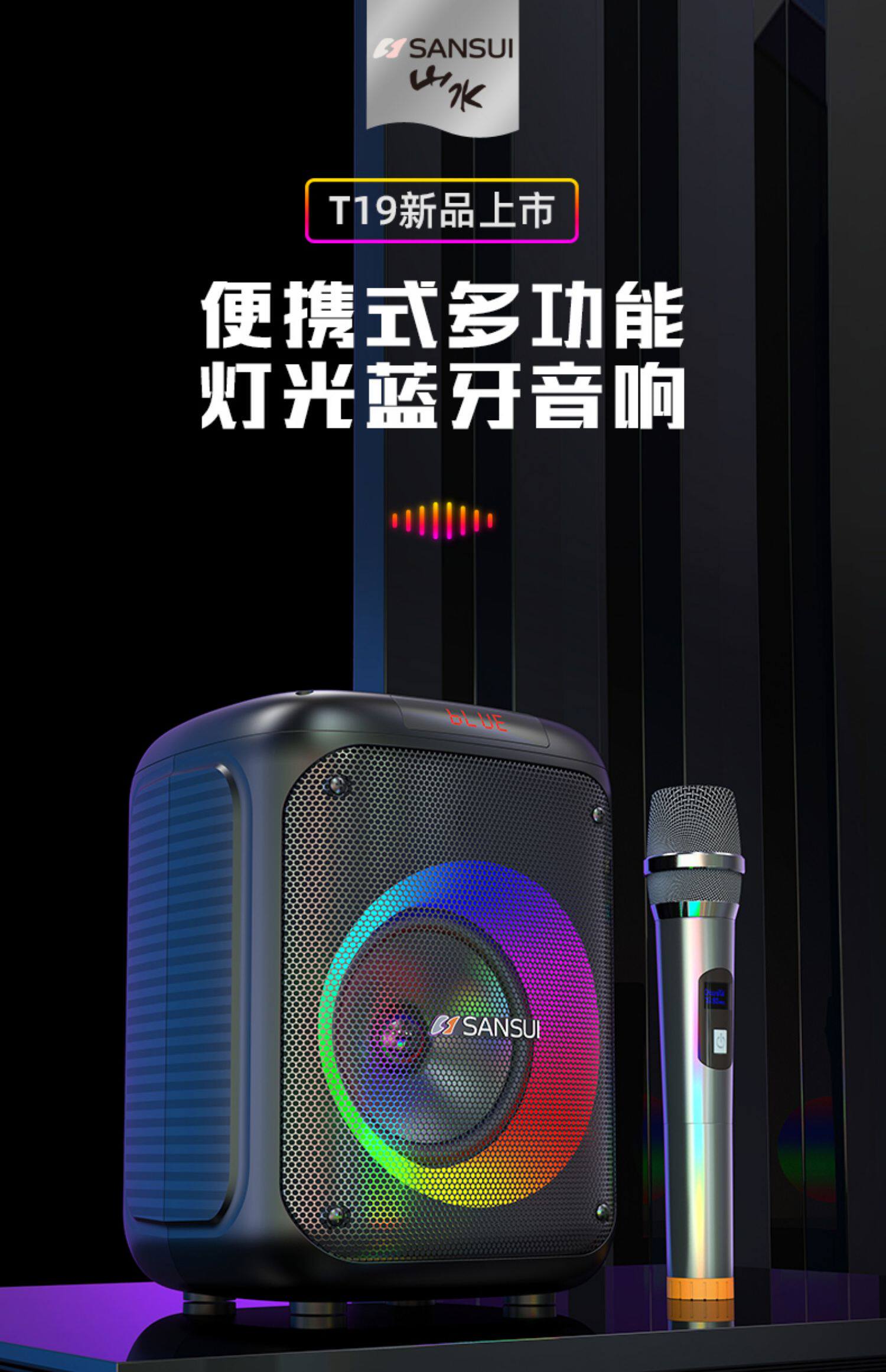 山水T19 时尚灯光手提K歌音箱