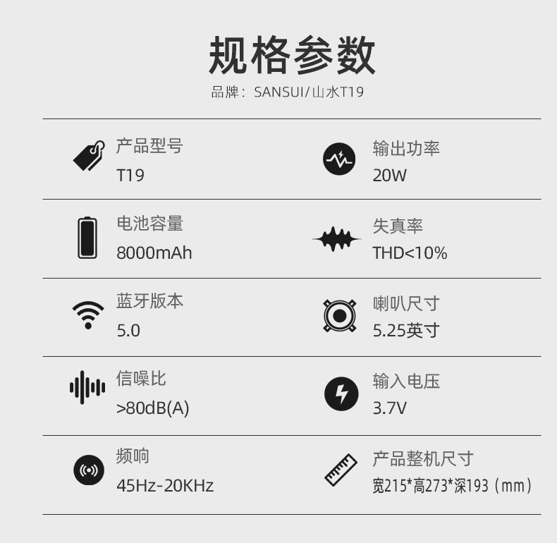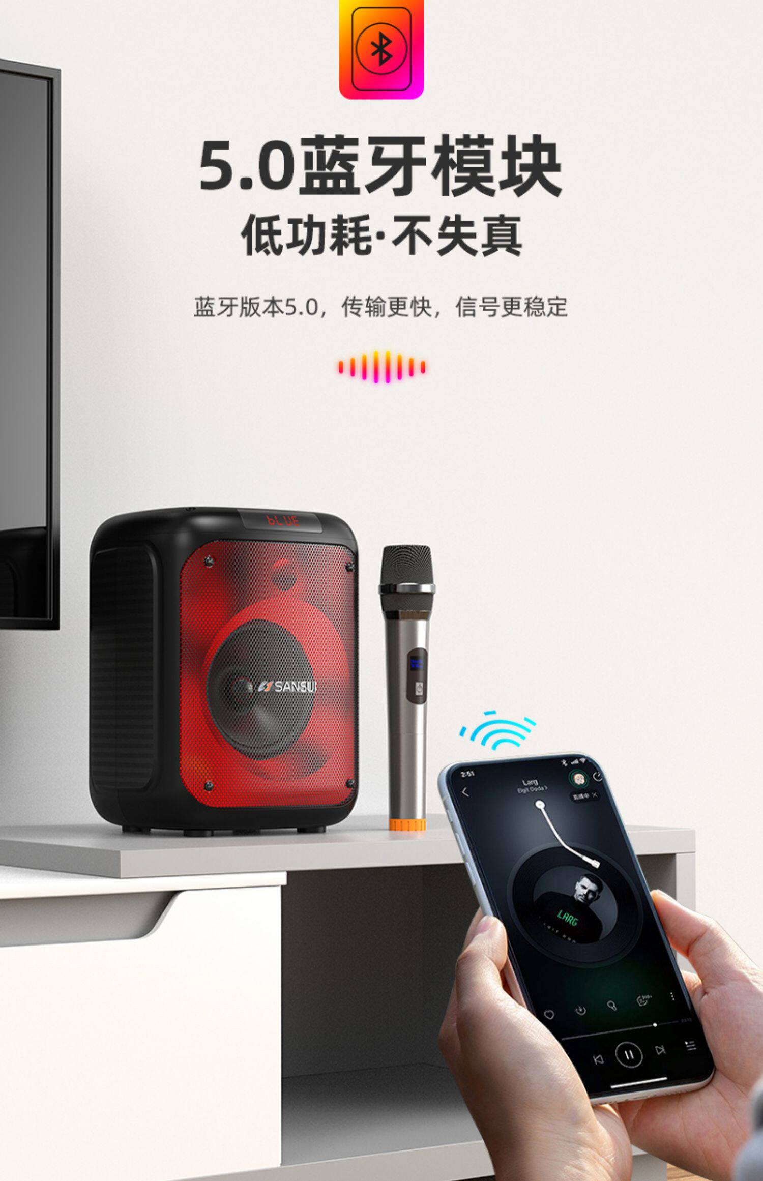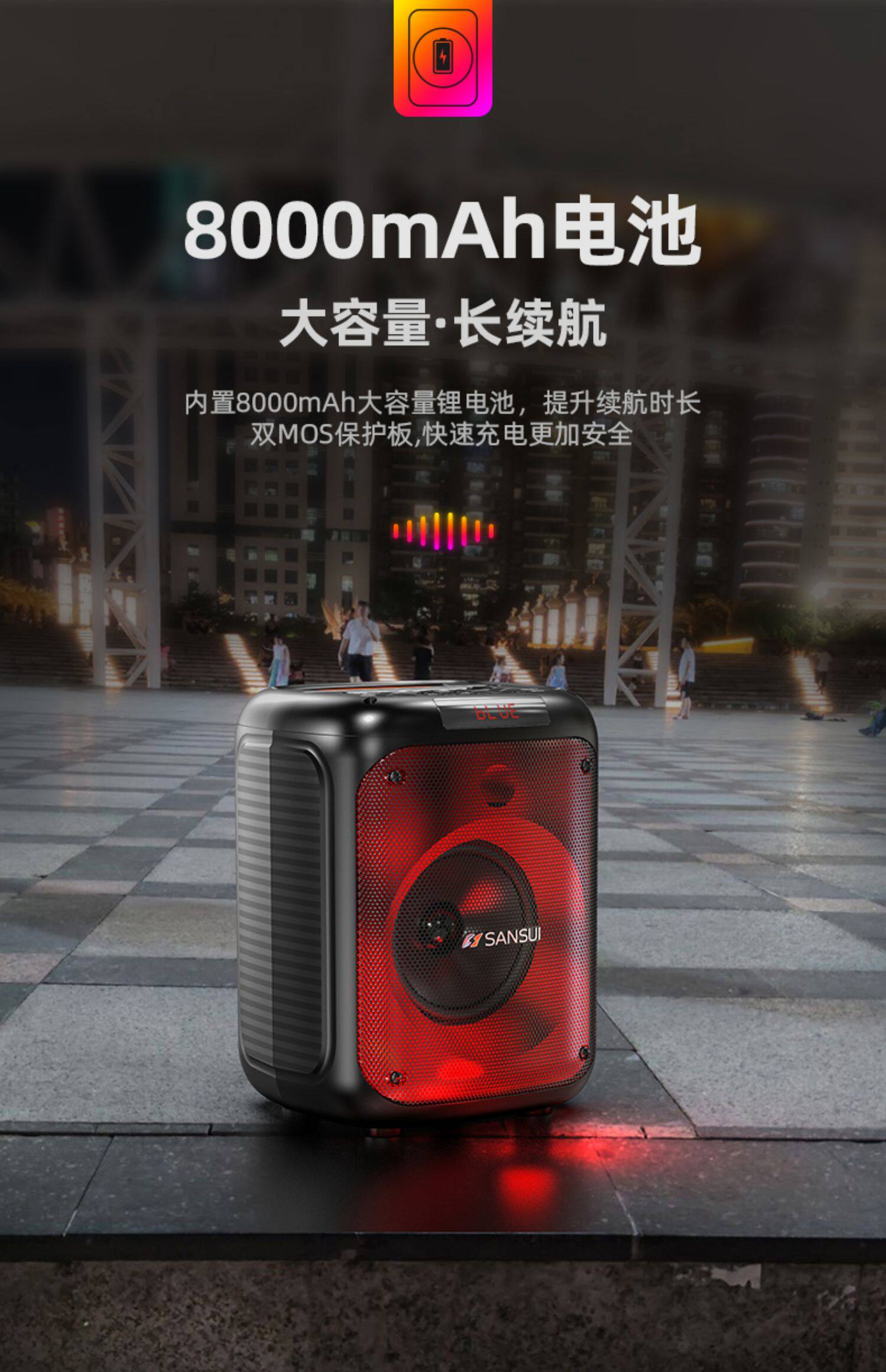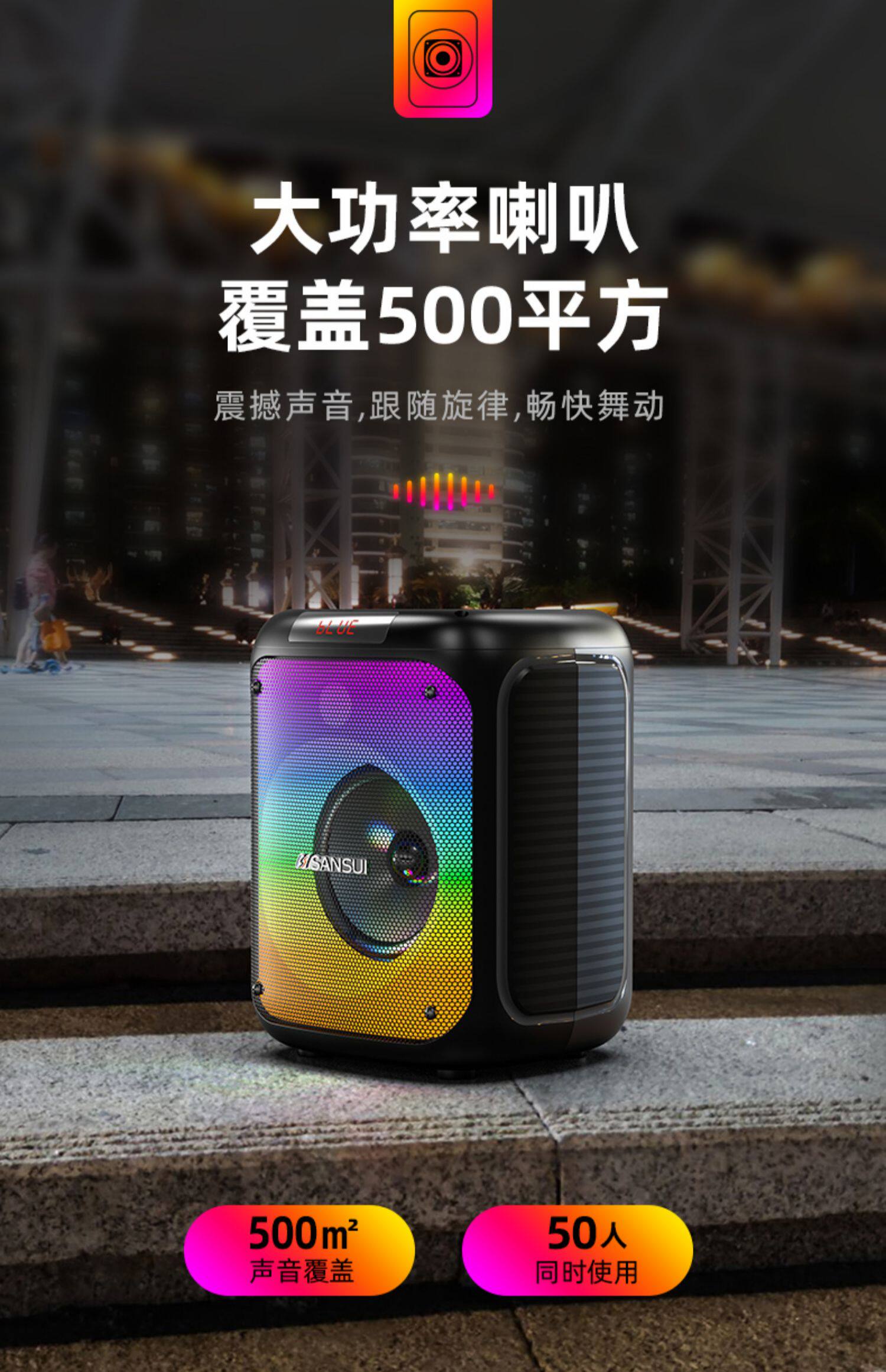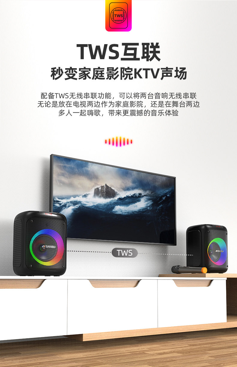 山水T19 时尚灯光手提K歌音箱